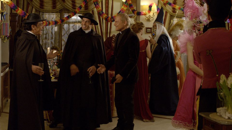 Don Matteo, Natalina, Capitano Tommasi und Maresciallo Cecchini sind auf einem Fest im Hause von Alberto Calvi eingeladen. Die gute Stimmung ist jedoch vorbei, als eine junge Frau bewusstlos im Garten gefunden wird. Keiner der Gäste kennt die Frau, allerdings fällt den beiden Polizisten und Don Matteo sofort die große Ähnlichkeit des Opfers mit Calvis Tochter Flamenia auf. Für weiteren Trubel sorgt das angekündigte Kostümfest des Bürgermeisters, da der Capitano nach einem schrecklichen Erlebnis in der Kindheit Kostümfeste nicht ausstehen kann.